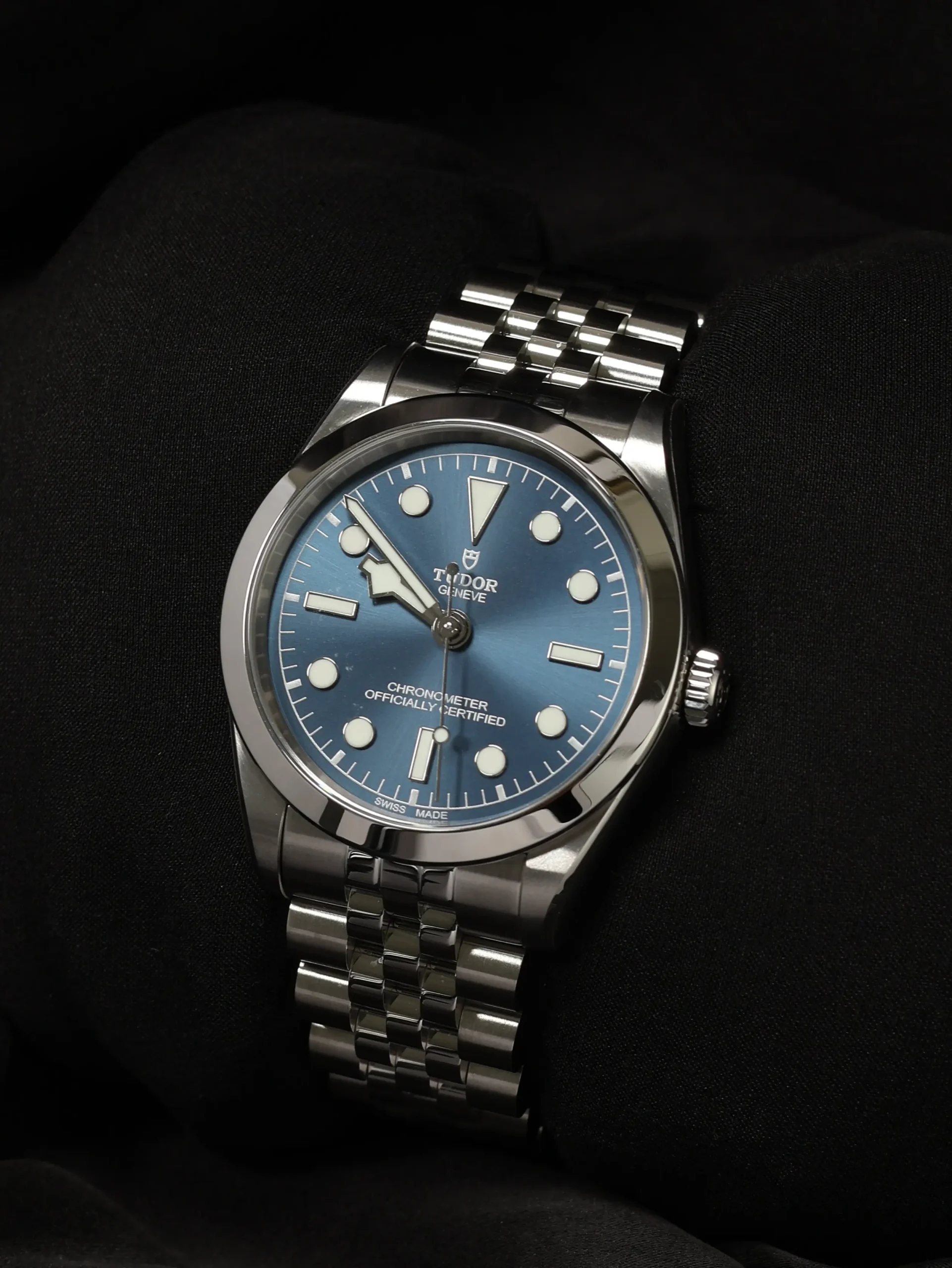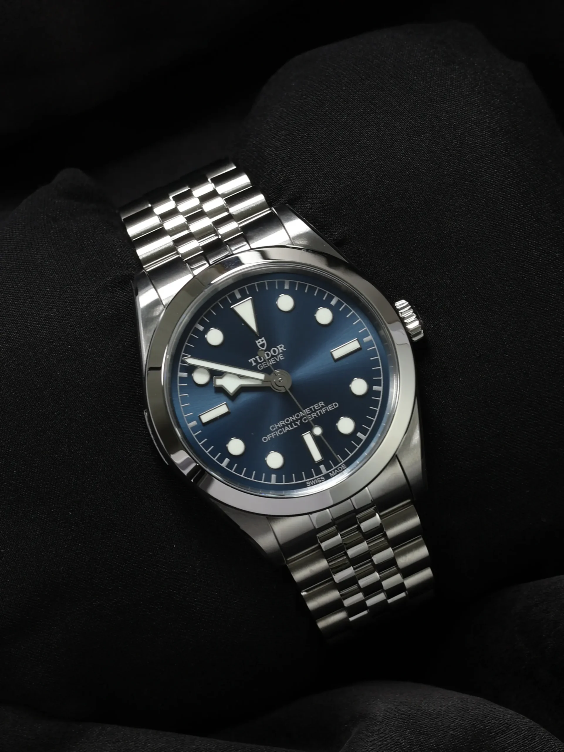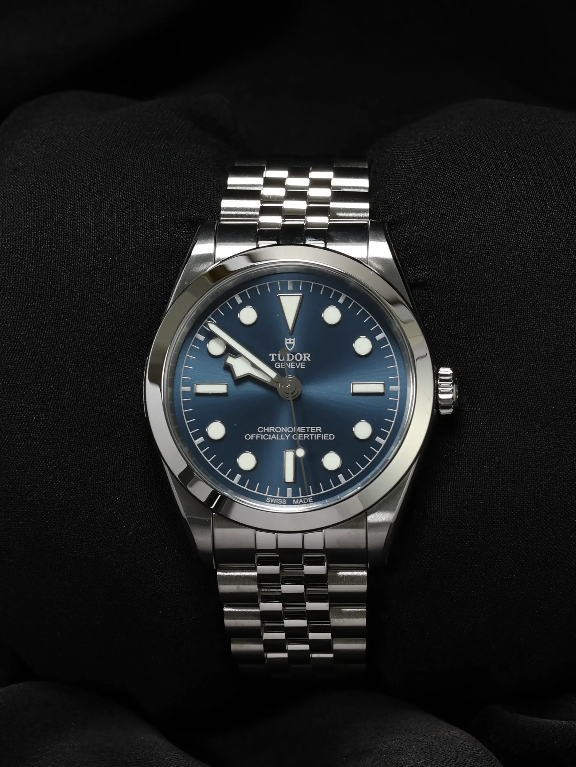 Unworn 2025 Tudor Black Bay One 36 (79640) self-winding automatic watch. This reference features a blue dial, encased in a 36mm steel case and bracelet. Features seconds, minutes, and hours functions. Functions and keeps time well. Comes with original box and warranty papers dated 2025.