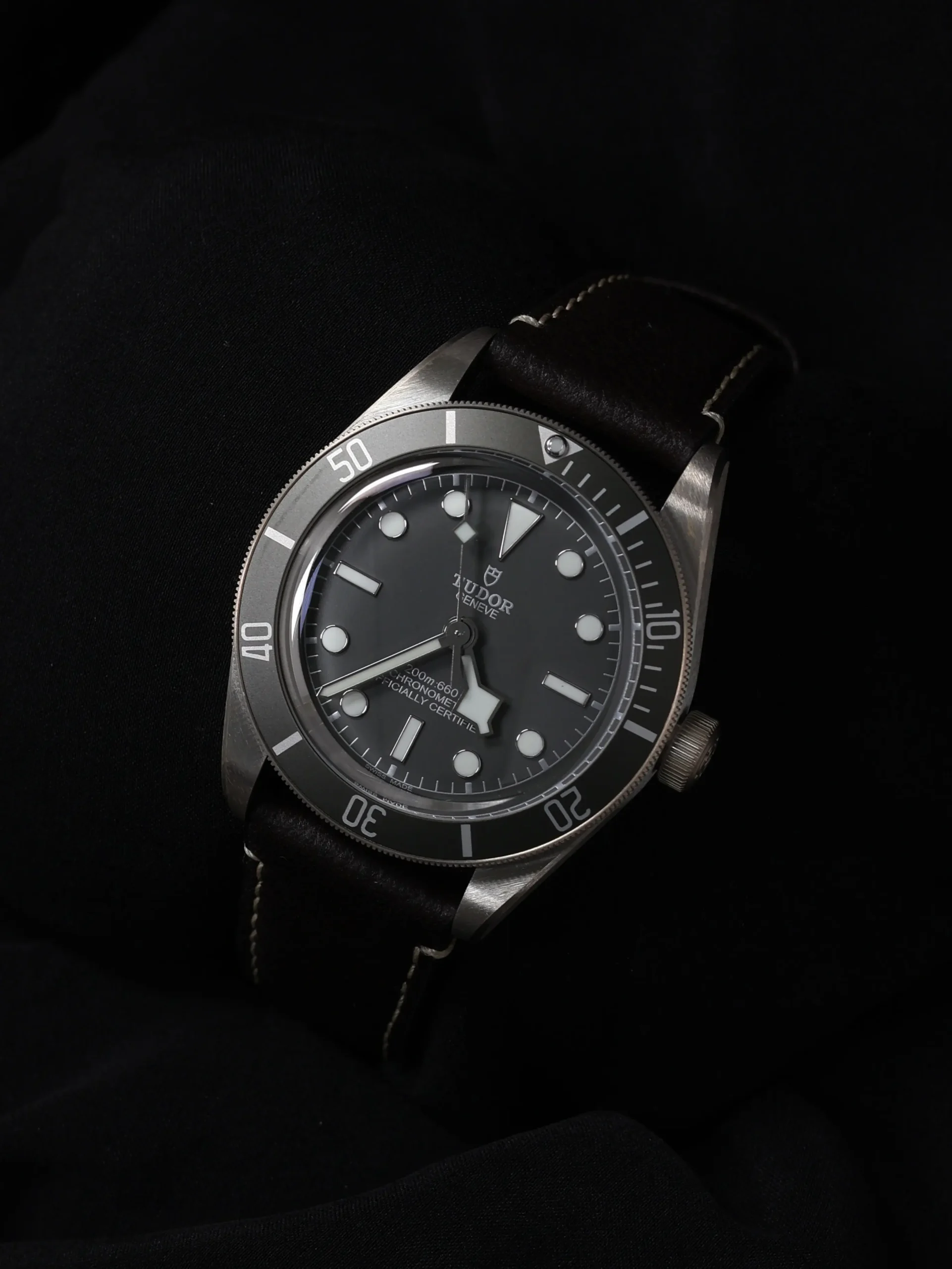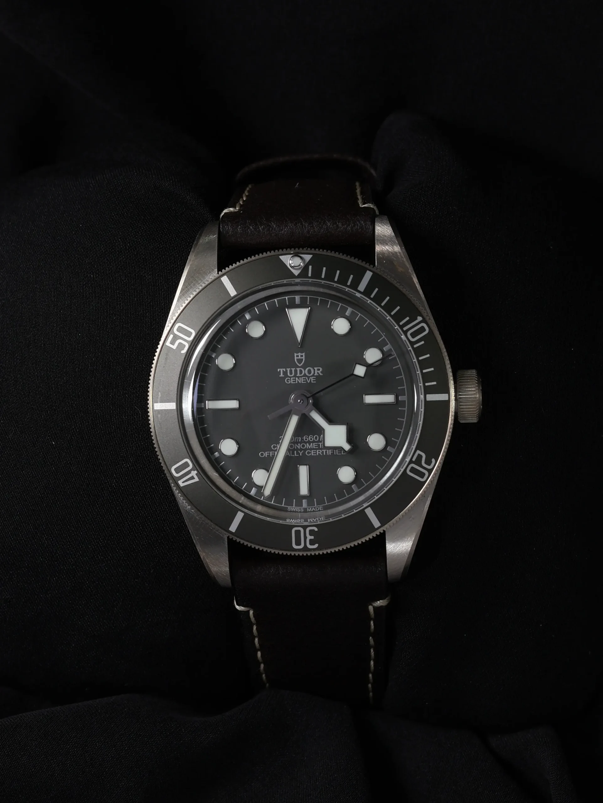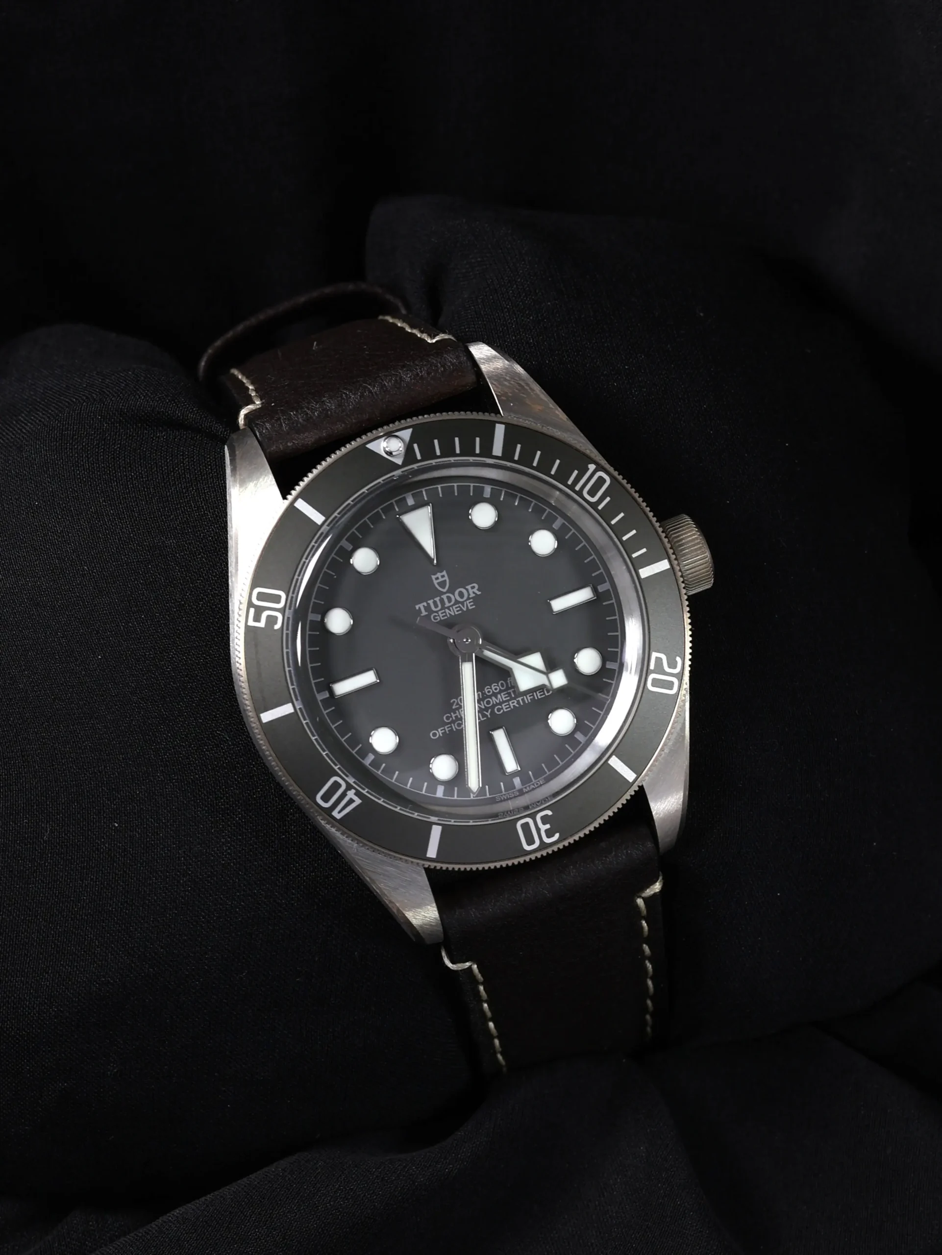 Unworn 2025 Tudor Black Bay 58 925 (79010SG) self-winding automatic watch. This reference features a grey dial and bezel, encased in a 39mm silver case and brown straps. Features seconds, minutes, hours and 60-minute countdown functions. Functions and keeps time well. Comes with original box and warranty papers dated 2025.