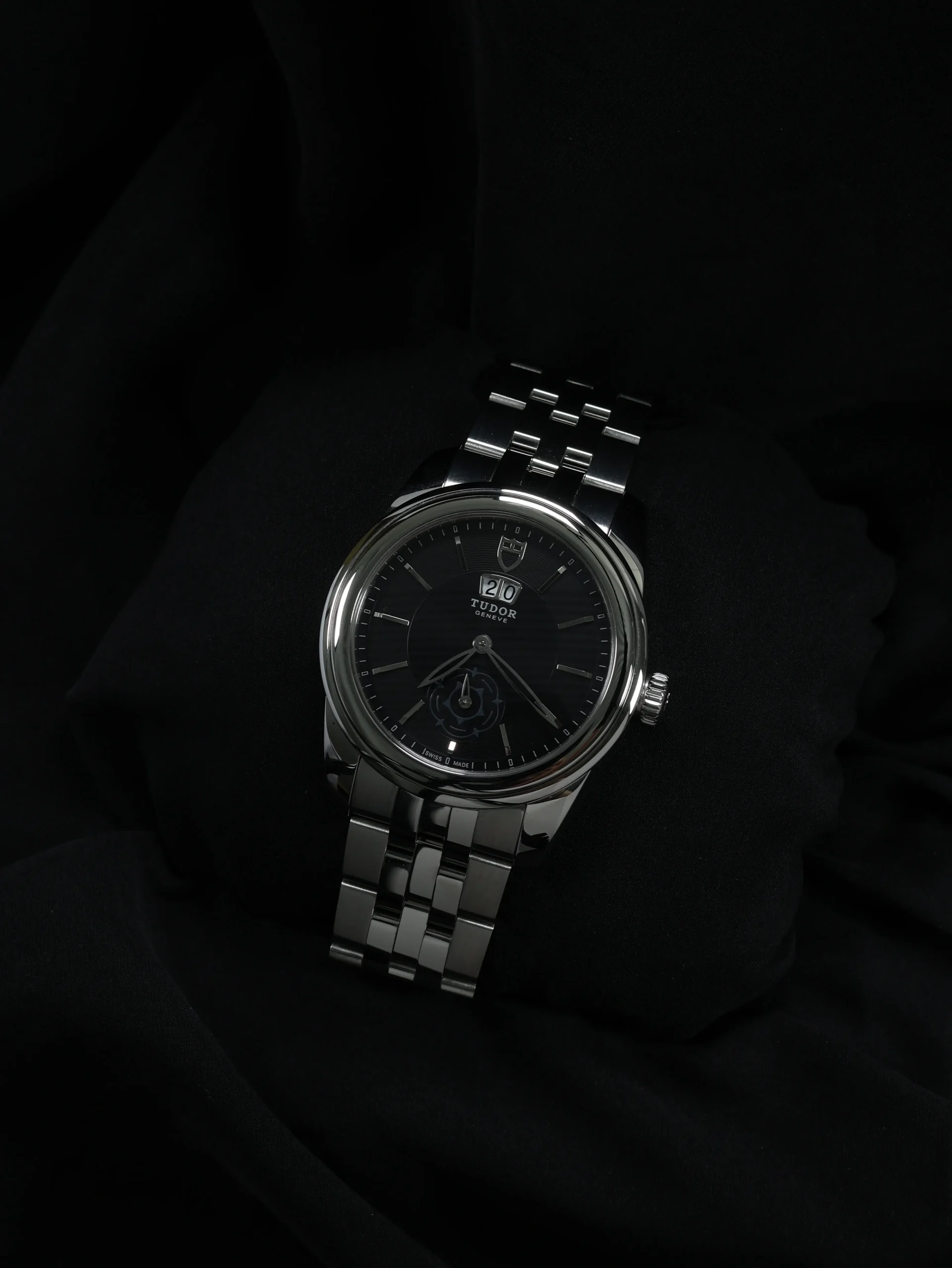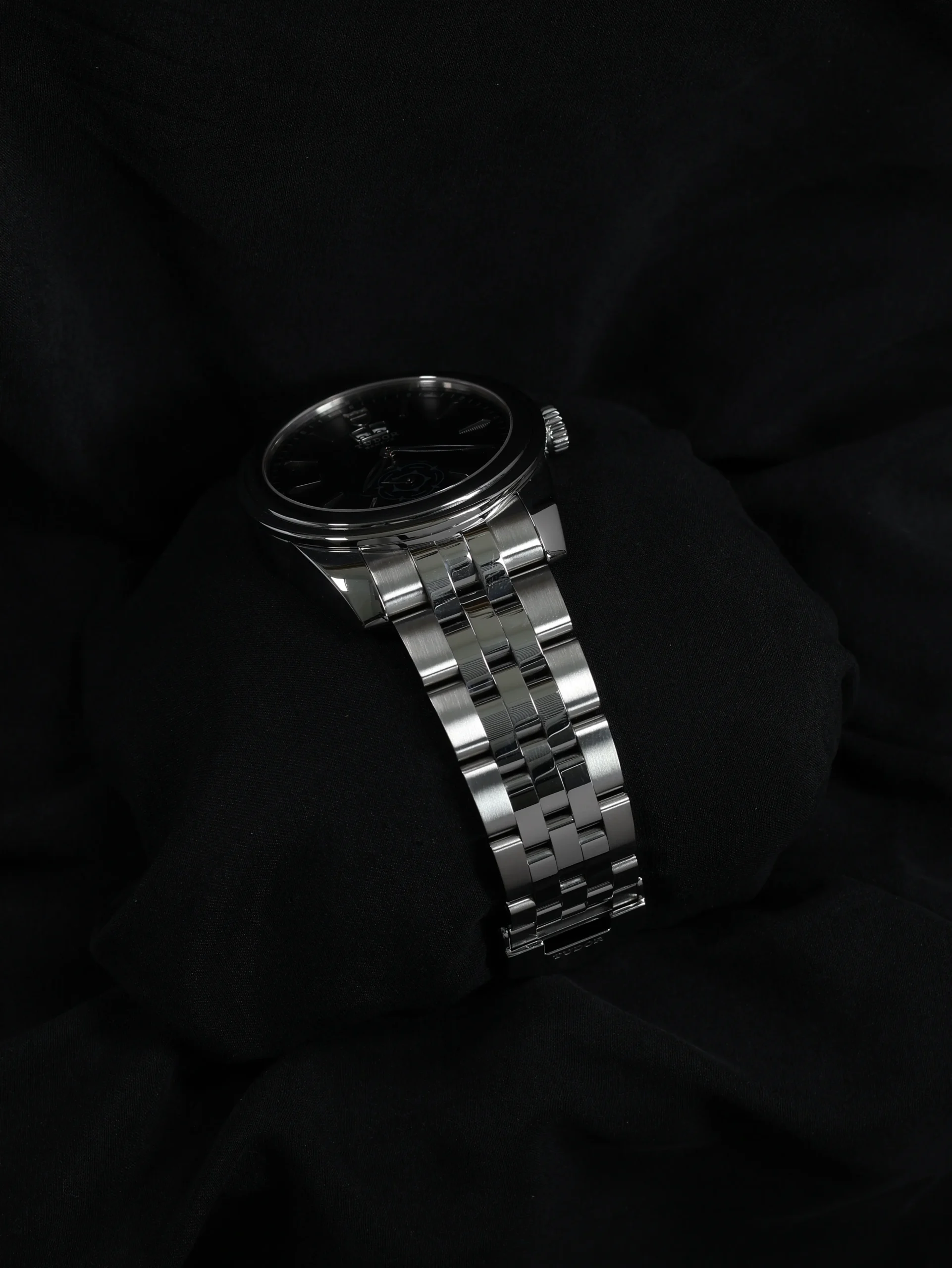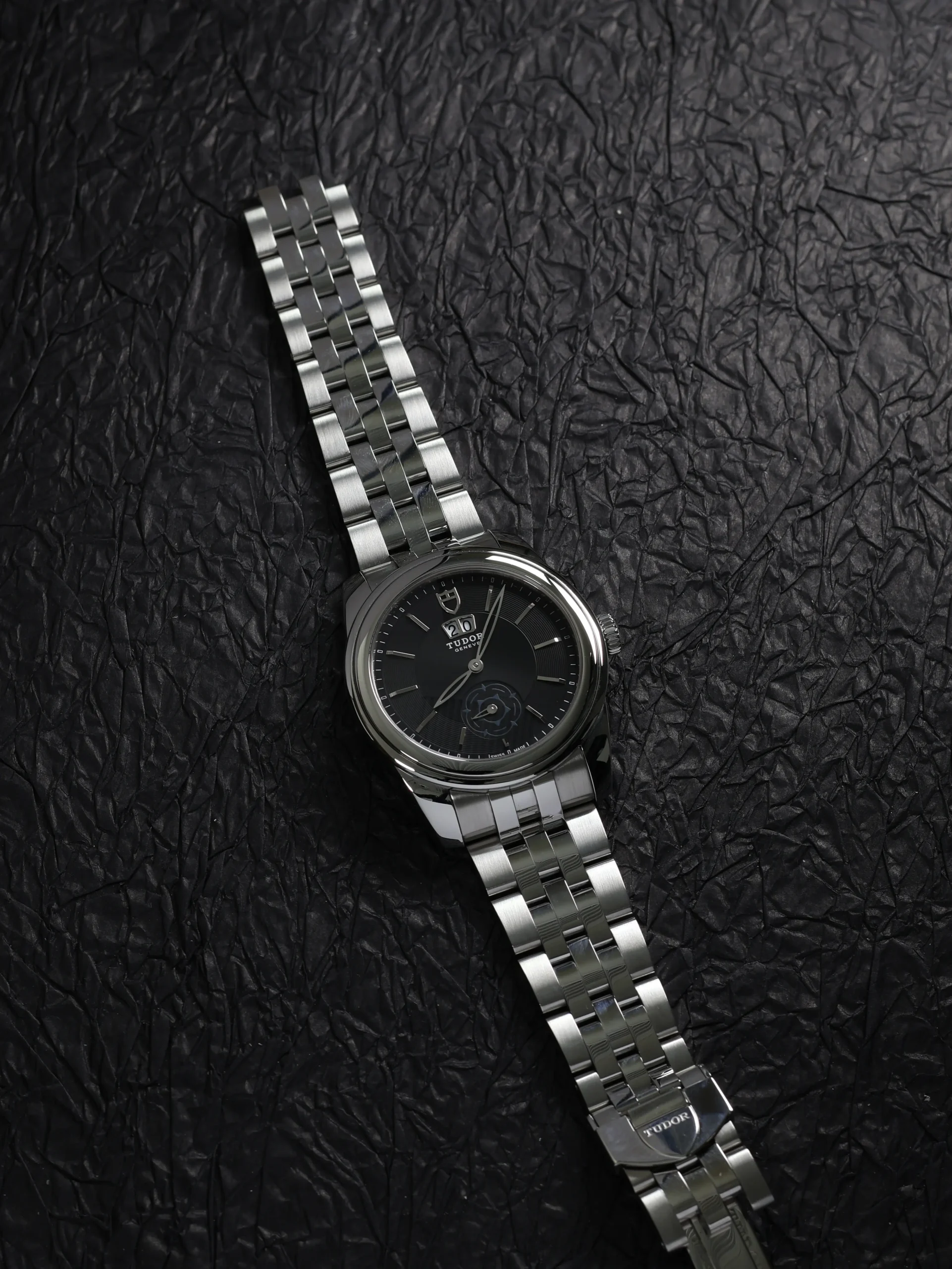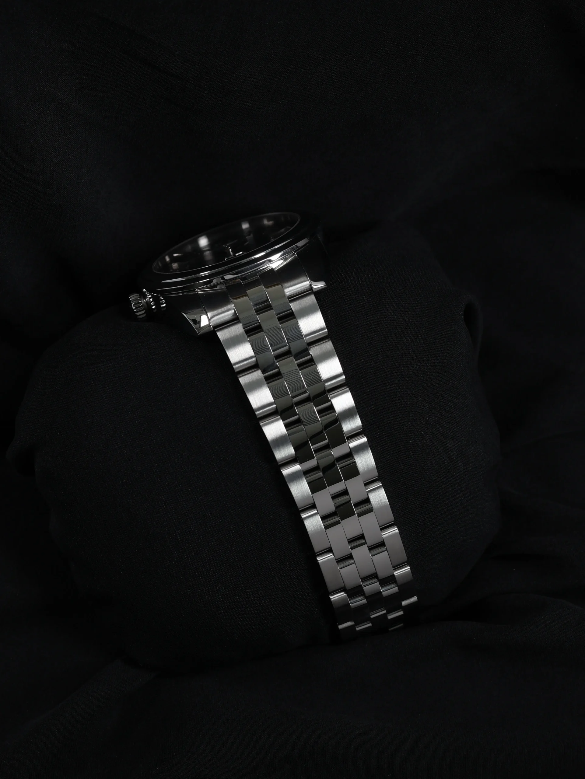 - Black dial and bezel