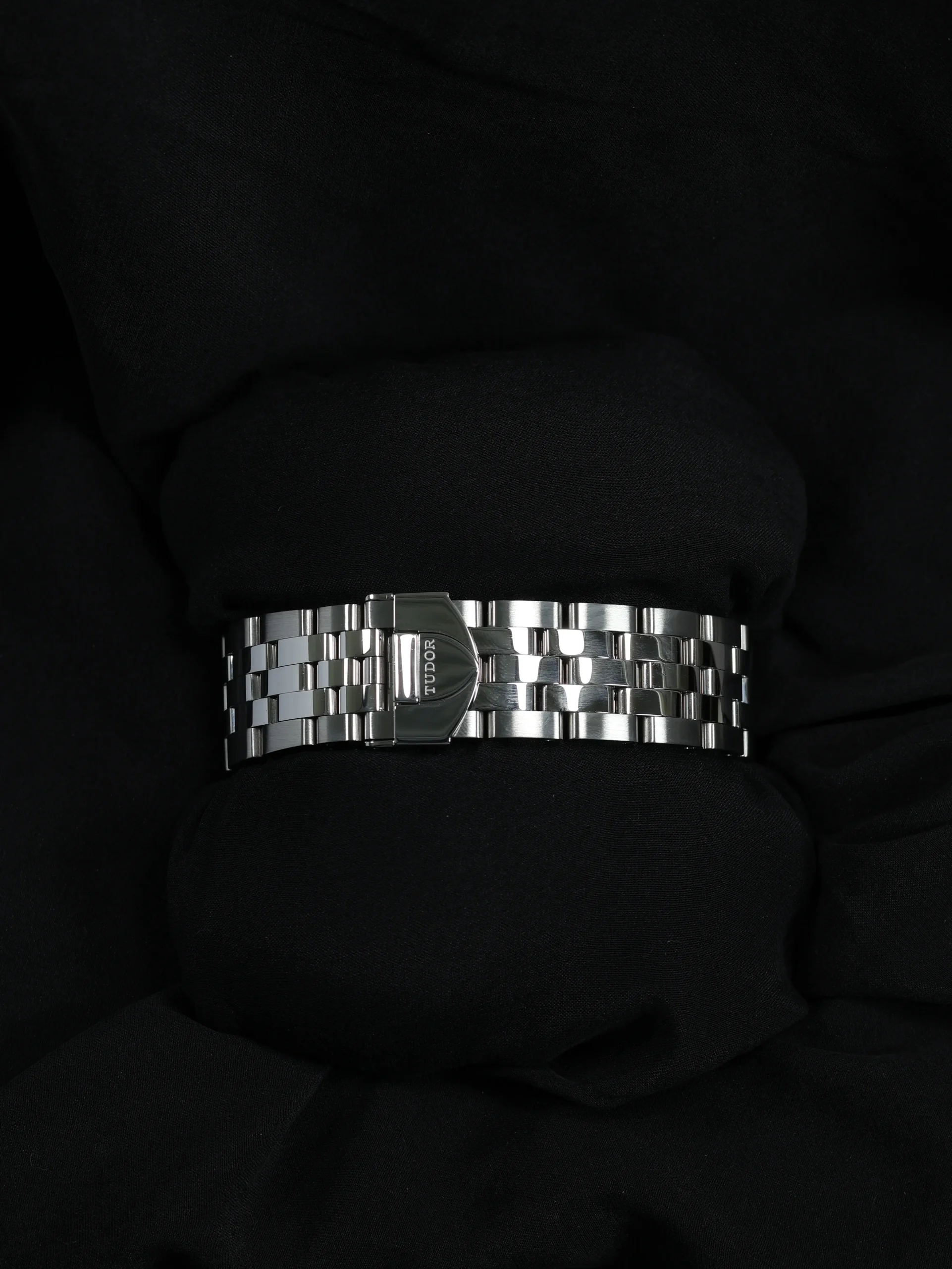 Pre-owned Tudor Glamour Double Date (57000) self-winding automatic watch. This reference features a black dial, encased in a 42mm steel case and bracelet. Features seconds, minutes, hours and date functions. This watch shows light use. Functions and keeps time well. Comes with original box and warranty papers dated 2016.