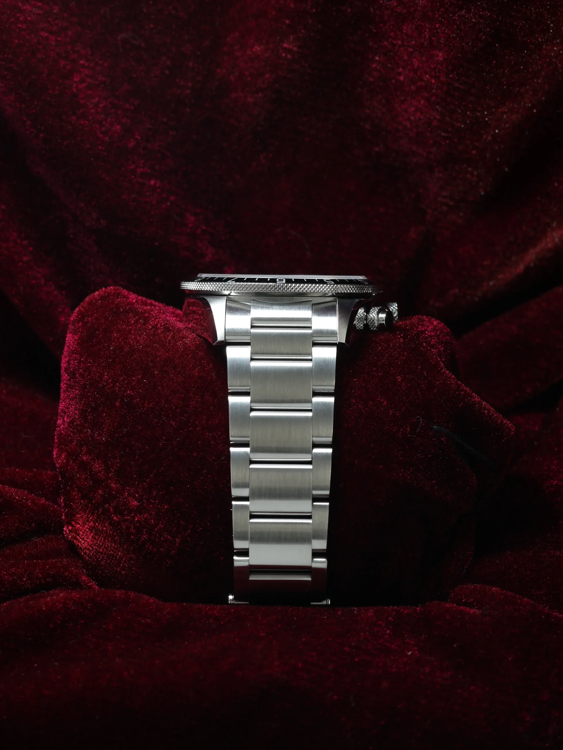 - Grey dial and black bezel